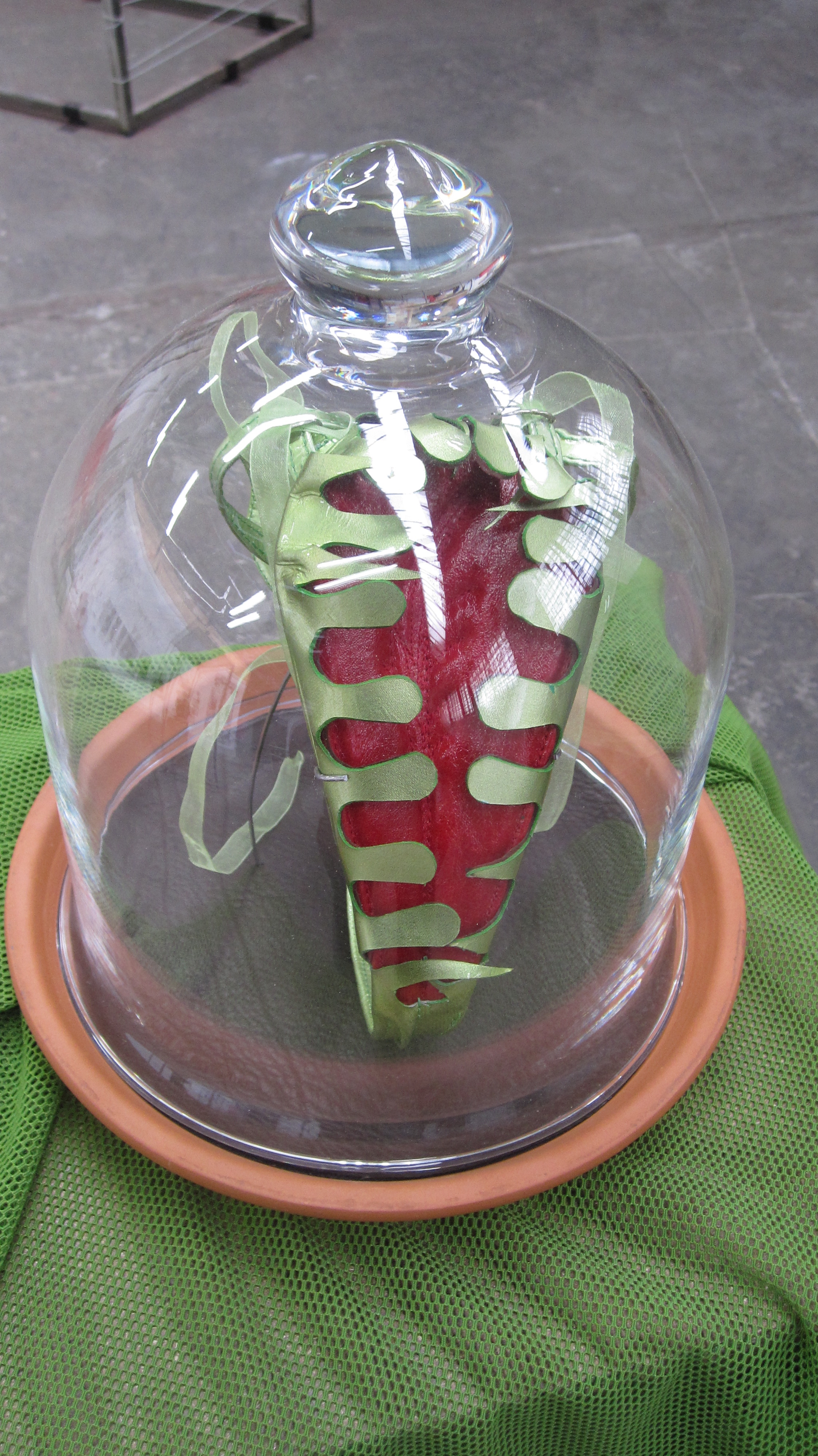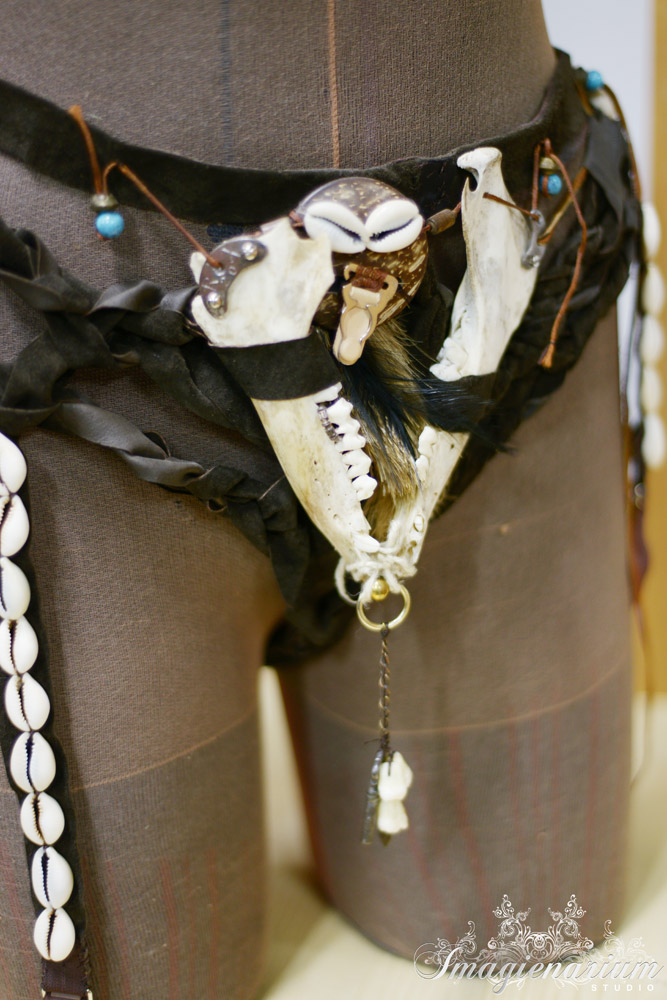 J’ai réalisé pendant quelques années des chaussures et accessoires entre autres pour Sophie Bernardin et l’équipe du CRAZY HORSE SALOON, pour lesquels j’ai toujours eu une grande admiration. L’habitude était déjà prise de confectionner des chaussures et des strings. J’ai commencé cette série en fin 2009. Mes pièces sont réalisées à partir de matériaux de récupération, comme les clefs, les billets de banque, les filets alimentaires, je suis une glâneuse compulsive, et ce sont ces « trouvailles » qui m’ont guidées bien avant l’idée ou la réflexion sur ce projet, c’est la matière qui s’exprimait.