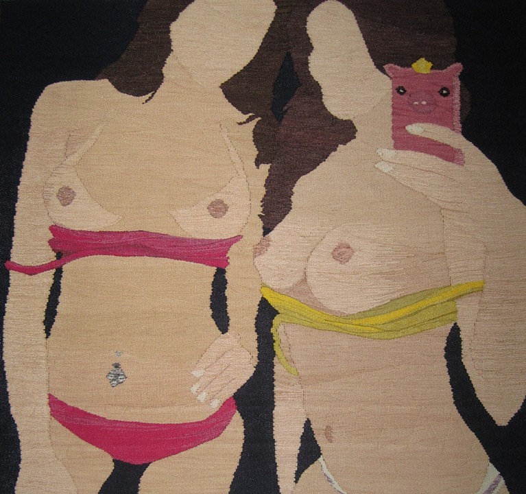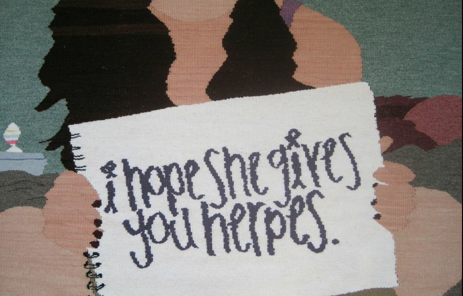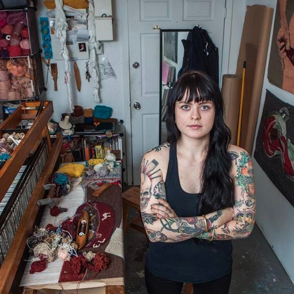She makes them out of hand dyed wool that use imagery found on the internet or imagery inspired by events that she’ve experienced. Graduated from Massachusetts College of Art and design and Tyler school of Art, Erin works currently in NYC at Joshua liner gallery and in San Francisco at Guerrero gallery.